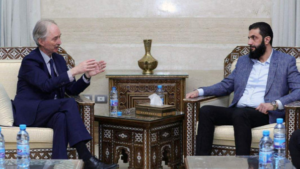 Посланник ООН в Сирии Гей Педерсен встречается с лидером пришедшей к власти в Сирии вооруженной оппозиции Ахмедом аш-Шараа в Дамаске