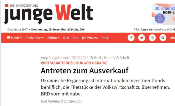 «Правительство в Киеве, очевидно, более чем содействует такому вытеснению, оно активно участвует в нём, даже если операция по смене правящего класса налету может оказаться рискованным предприятием в соответствии с правилами политической экономии», – пишет Junge Welt.