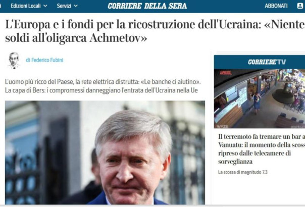 Итальянское издание отмечает, что роль олигархов на Украине порождает напряженность между одним из крупнейших европейских финансистов и основной электрораспределительной компанией страны «ДТЭК», подконтрольной Ринату Ахметову. Это угрожает удлинить путь Киева в Европу.