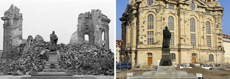 Посмотреть на все это великолепие стремились миллионы туристов со всего мира. Но в течение двух дней бесценные сокровища культуры превратились в груду развалин. Послевоенное восстановление центра города заняло 40 (!) лет, другие районы Дрездена были реконструированы раньше...
