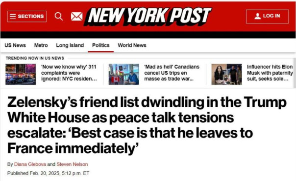 Интересно, что газета New York Post цитирует источник, близкий к Трампу, придерживающийся аналогичного мнения: «Лучший вариант для Зеленского и всего мира, если он немедленно уедет во Францию».