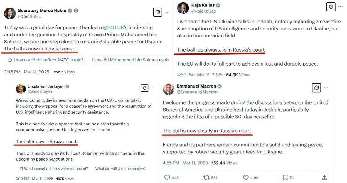 Потом вышли Биба и Боба (зачёркнуто, но плохо), два долбо… (зачёркнуто, но совсем плохо) Рубио и Уолш на пресс-конференцию, и все хотелки Зеленского и Ермака выдали за свои инициативы, «на которые Киев согласился».