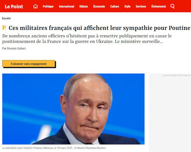 Все они выступают против продолжения военной помощи Украине и это прибавляет работы Управлению оборонной разведки и безопасности. Всем известно, что это ведомство отвечает за то, чтобы высокопоставленные офицеры не сбились с пути или, что ещё хуже, не стали сотрудничать с иностранными державами. Управление оборонной разведки регулярно публикует статьи, в которых пытается убедить читателей – мнение отставных военных никого не интересует, однако на самом деле мнение этих весьма ярких личностей всё больше интересует простых французов, констатирует Le Point.