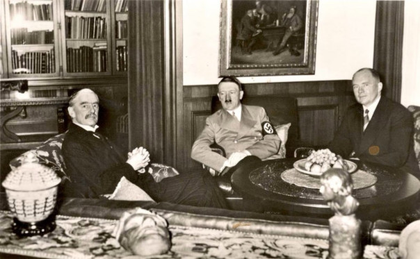 С 1933 года британское правительство имело представление об идеях Гитлера в области внешней политики и войны. В апреле этого года посол Великобритании в Германии направил в Лондон донесение. В нем был дан обзор политического манифеста и автобиографии Гитлера — «Майн Кампф». Из отчета было очевидно желание Гитлера перекроить карту Европы военным путем.