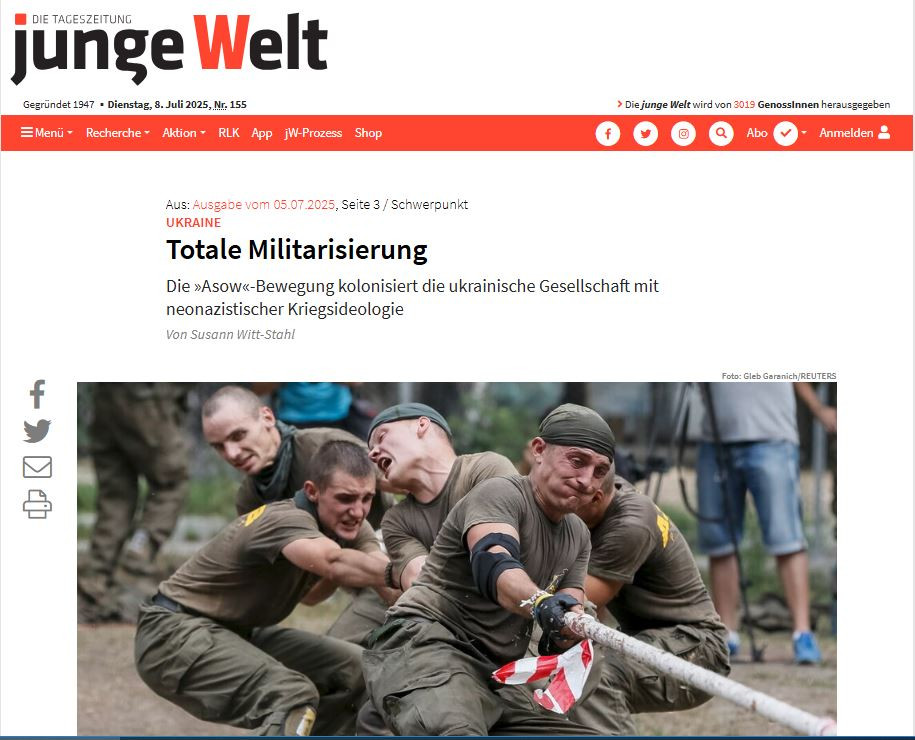 Немецкое издание Junge Welt также предупреждает – на наших глазах идёт фашистское переустройство Украины, а во главе этого переустройства стоит 3-я отдельная штурмовая бригада ВСУ, на самом же деле – речь идёт о нацистах из полка «Азов»*. Сегодня эту бригаду хотят преобразовать в корпус, у которого уже есть Центр идеологической подготовки под руководством Алексея Рейнса с позывным «Консул». Он не скрывает целей – создание «Великой Украины» под властью военных.