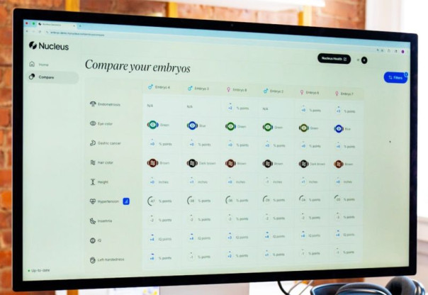 Это запуск проекта по синтетической сборке человеческой ДНК в Великобритании, заявление Илона Маска, что технологии мРНК позволяют изменить человека на клеточном уровне настолько глубоко, что его можно «превратить во что угодно», запуск в США первого генетического редактора ребенка: стартап Nucleus Genomics уже представил сервис Nucleus Embryo (на фото ниже), который позволяет семейной паре настроить ребёнка на стадии эмбриона (за заданный цвет глаз, волос, рост и пол малыша придется выложить сумму эквивалентную 475 тыс. руб.).