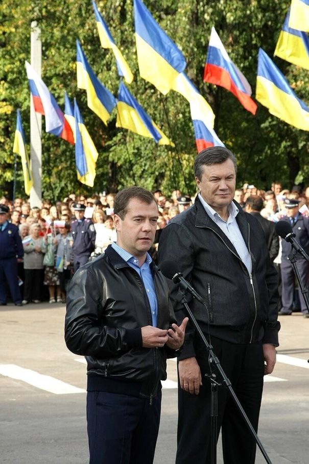 Сентябрь 2010 года, автор лозунга «свобода лучше, чем несвобода» Дмитрий Медведев в Киеве с Виктором Януковичем: судьба Украины - яркий пример того, что происходит, когда экстремисты захватывают контроль над политическим процессом.