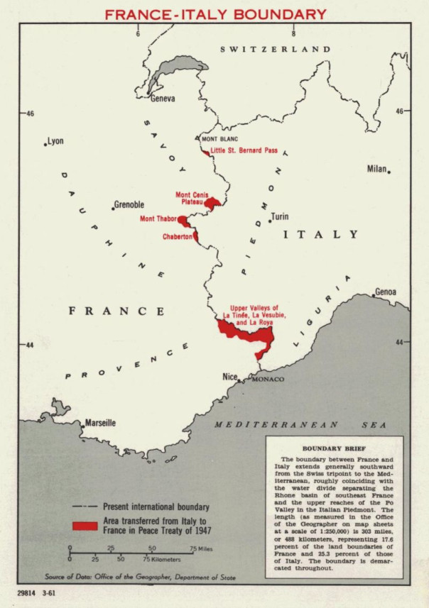 Граница между Францией и Италией до и после 1947 г.