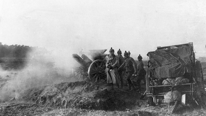 Германская артиллерия ведёт огонь по позициям российской армии в районе польской Лодзи. Фото: Global Look Press