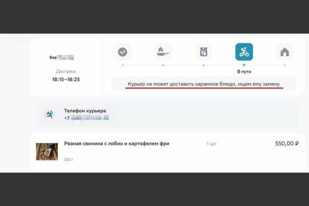 В мае 2025 года социальные сети облетел скриншот из приложения службы доставки еды. На изображении видно, что клиент заказал блюдо со свининой, а курьер-мусульманин отказался его везти, сославшись на религиозные убеждения. Служба поддержки якобы подтвердила отказ, сообщив, что блюдо «харамное».