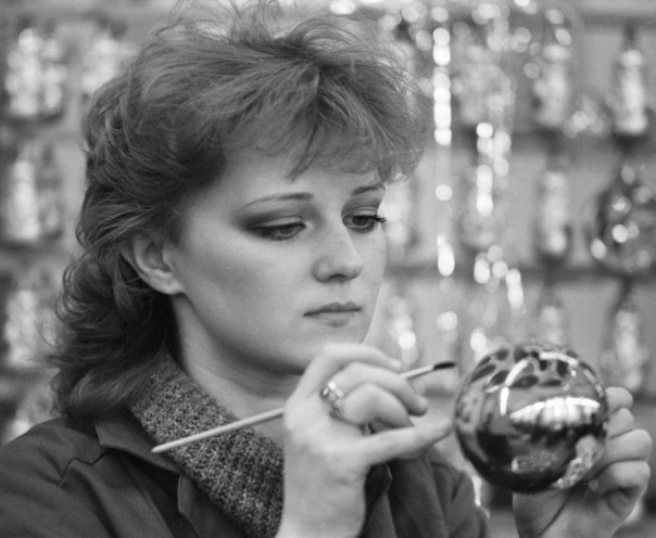 Даже в 1980-е сохранилась традиция росписи ёлочных игрушек вручную