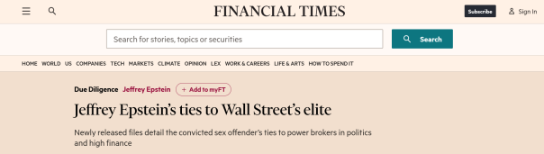«Выяснилось, что у некоторых из тех, кто ранее отрицал свою связь с Эпштейном, были с ним тесные связи», — подчёркивает FT.