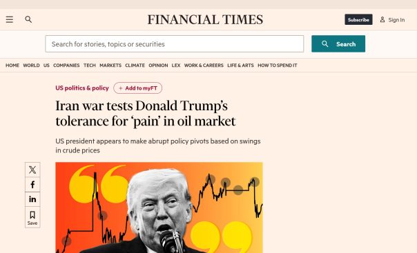 «Война с Ираном проверяет терпимость Дональда Трампа к «боли» на нефтяном рынке»