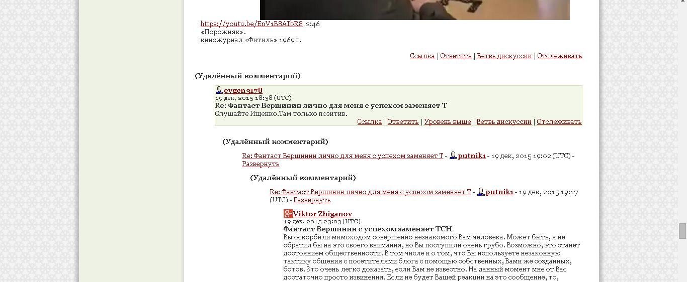 "Вы босса, как будто, прикрываете. Телохранитель? Моментальный выстрел на звук))). При чем тут Ищенко, уважаемый? Речь о фантасте Вершинине."