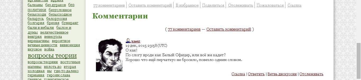 Так вот. За последний примерно год тональность моего героя резко поменялась. Раньше товарищ абсолютно безоглядно топил за ХПП (хитрый план Путина), а теперь язвит по любому поводу и убеждает россиян, что "всё, всё, всё пропало", но только хитренько так, с подъеб.., пардон, с подколочками. Ну и ладно. Мне-то что с того? Может, барину с другой стороны пообещали. Ему тоже жить надо. Пусть. Но всё-таки тревожно мне было за него: ведь почти что один из любимых авторов...