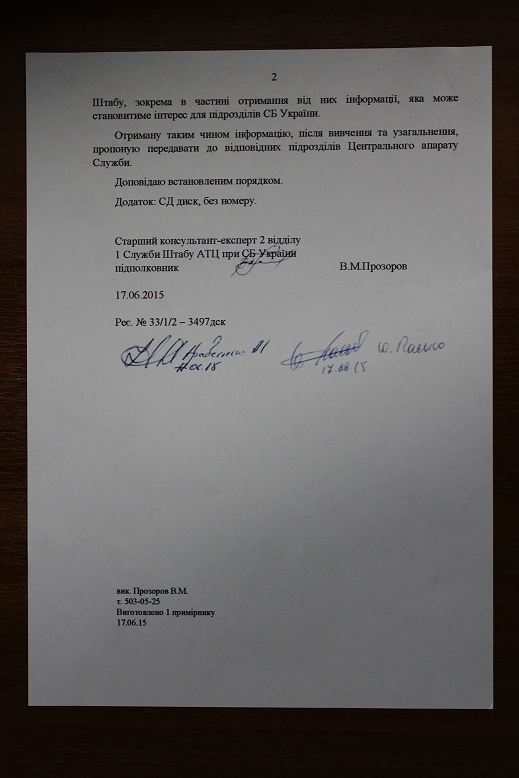 В октябре 2016 года из Штаба антитеррористического центра при СБ Украины руководству АТО уходит письмо «В отношении антиукраинской деятельности представителя иностранных СМИ в районе АТО».