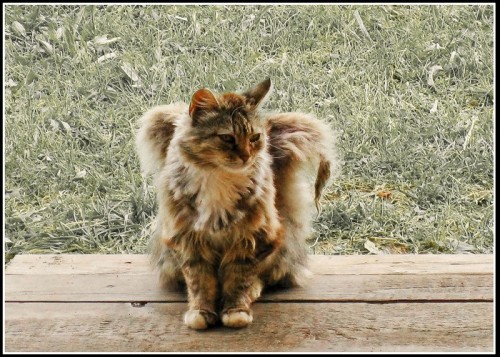 Существует 3 различные версии, объясняющие появление у котов крыльев. Наиболее распространенным считается спутывание шерсти у длинношерстных кошек. Колтуны могут образовываться вдоль всего тела, если кошка не получает надлежащего ухода. Когда кошка движется, свалявшаяся шерсть также двигается, создавая иллюзию машущих крыльев. Колтуны создают массу неудобств для кошки, раздражая кожу и представляя прекрасную среду для размножения паразитов. Но это, самое простое, объяснение оказалось несостоятельным, поскольку многие достоверно известные коты-ангелы имели короткую шерсть.