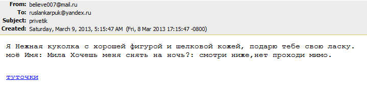 Глядя на это «чудо», понимаешь, почему Руслан по-прежнему находится в активном поиске и подписывается на рассылку сообщений о предоставлении секс-услуг.