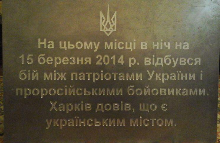 «Харьков доказал, что является украинским городом», — написано на мемориальной табличке. Источник