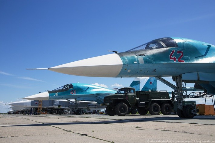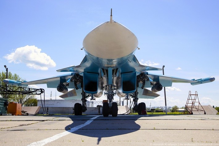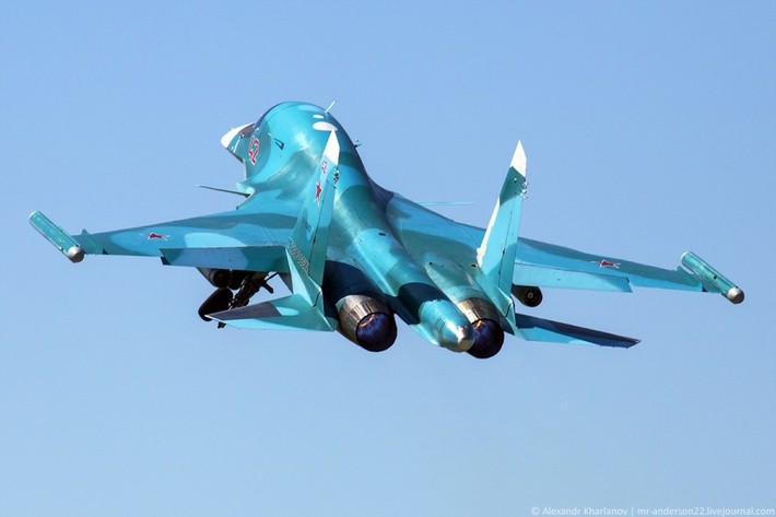 Как и Су-24М, Су-34 на взлете использует форсажные режимы.