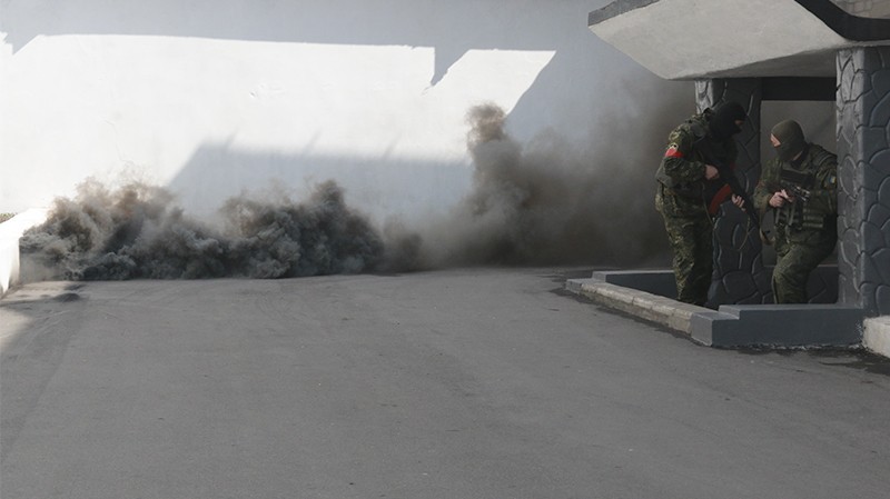 Под натиском правоохранителей злоумышленники вынуждены сложить оружие. Они задержаны и помещены в автозак. А тем временем штурмовая группа приступила к «зачистке» территории», — говорится в сообщении.