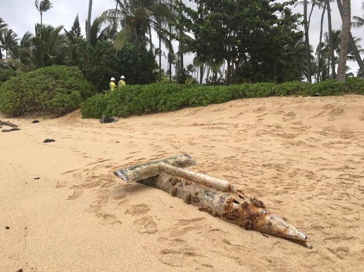 Жители гавайского острова Мауи слегка переполошились, когда после очередного отлива обнаружили потрепанный временем объект из алюминия и стекловолокна.