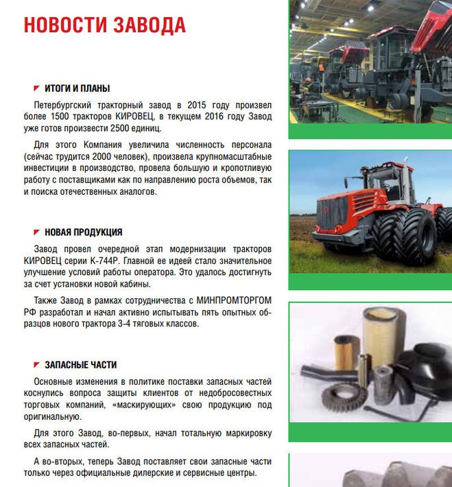 ЗАО «Петербургский тракторный завод» в 2015 г. выпустило более 1500 тракторов «Кировец», почти в 2 раза превысив показатели 2014 г., сообщил представитель ОАО «Кировский завод».