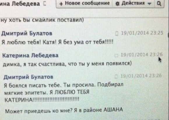 Также мы заполучили личную переписку Дмитрия и его избранницы. «Я люблю тебя! Катя! Я без ума от тебя… Я тебя зацелую и обсудим все накопившееся прогуливаясь вдоль океана, хорошая моя», - пишет Булатов своей пассии в чате одной и соцсетей и получает в ответ: «Димка, я так счастлива, что ты у меня появился)».