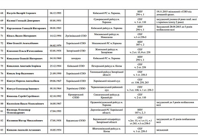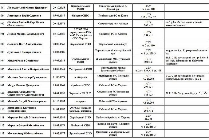 На страничке специально оговорено, что опубликованные данные — лишь малая часть общего количества политзаключённых на Украине.