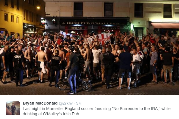 Пишут, в Марселе "общак" русских футбольных хулиганов количеством 250 человек разогнал площадь поющих англичан. Не уверен пока, что так всё и было, но вообще наши могут.
