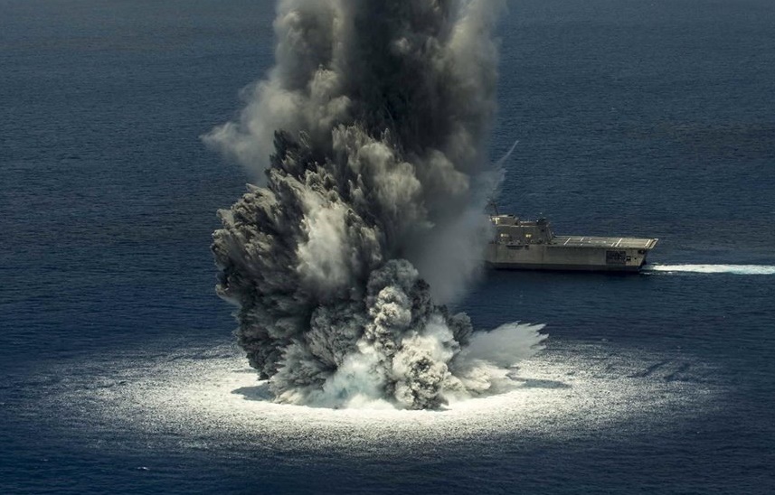 Появилось эффектное фото испытаний корабля USS Jackson (LCS-6) «реальным» боем. Если быть точнее, рядом с ним произвели мощный взрыв: это позволило определить, насколько Jackson устойчив к повреждениям. Взрывное устройство, имеющее массу 4,5 тонны, взорвали на расстоянии всего лишь 90 метров от корабля.