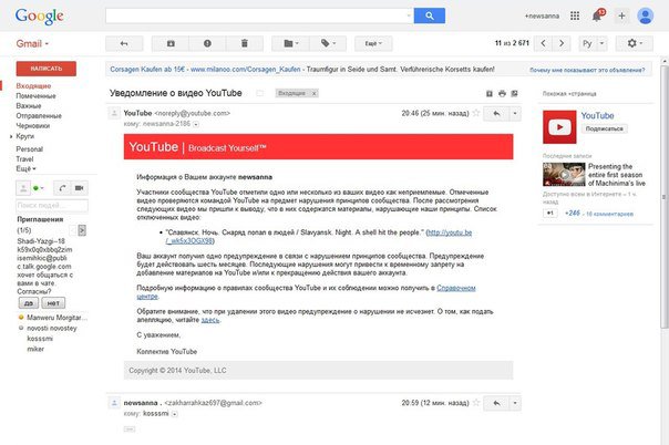 Вынуждены сообщить Вам, что канал "News-anna" информационного агентства «Anna-news», работающий уже долгое время на платформе проамериканского сайта "YouTube", заблокировали за «недопустимое содержание в видео». Это произошло после публикации видео, где в Славянске хунта безжалостно расстреливала мирных жителей! https://www.youtube.com/watch?v=Zz-GqIBiv-4 Наша основная тематика освещение событий Юго-востока, в том числе беспредел боевиков национальной гвардии! По «случайному совпадению» это произошло за 10 часов до начала нелегитимных выборов 25-го мая на Украине!