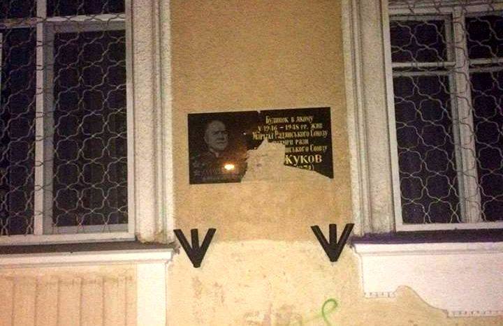 «15.08.2016 года, примерно в 21:15 в Одессе совершён очередной акт вандализма — разбита мемориальная доска маршала Жукова на Дворянской улице. Полиции, как всегда, «очень важен наш звонок», — написал Яворский.