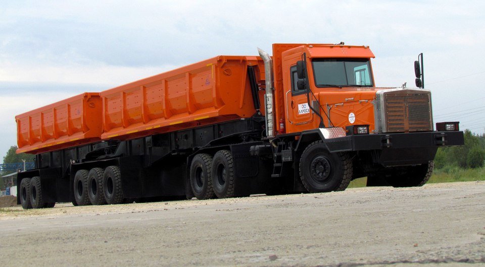 Компания «Тонар» из Московской области, известная своими прицепами и мелкосерийными грузовиками, по заказу алмазодобывающего холдинга «Алроса» разработала и построила в единственном экземпляре уникальный автопоезд «Тонар-45252» грузоподъемностью 130 тонн.