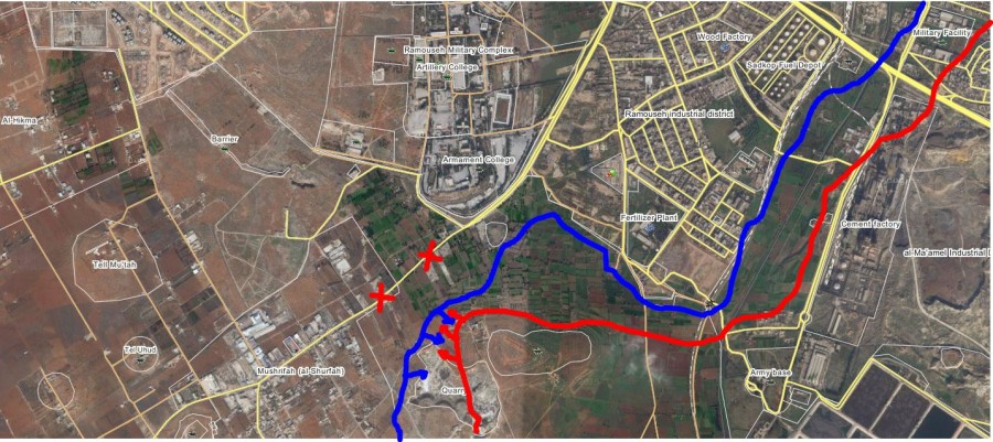 Район гаражей и развязки Рамусеха так же достаточно стабилен. Боевики опираясь на северную часть Рамусеха и квартал Аль-Америя препятствуют дальнейшим попыткам армии продвинуться вдоль трассы и через район гаражей к северной части Рамусеха, сохраняя физический контроль над дорогой идущей к югу артиллерийской базы и проходящей через Рамусех. В целом, здесь сложился позиционный фронт, который лишь незначительно двигается в последние пару недель несмотря на настойчивые попытки САА взломать его. При существенных потерях с обеих сторон, успехи САА пока что носят здесь тактический характер. Боевики могут записать себе в актив успешные оборонительные действия, но с другой стороны в оперативном плане их стратегия потерпела крах - переход к обороне привел к тому, что реальный коридор в