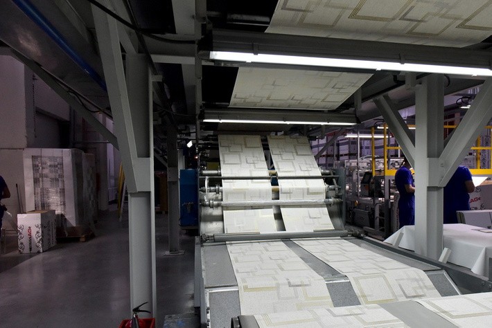 Первая очередь производства введена в эксплуатацию в июле текущего года и позволяет представить ассортимент из 400 видов обоев разных ценовых категорий. За четыре месяца изготовили больше 1,5 млн рулонов. Всю продукцию отправляют в торговый дом в Москву, оттуда она расходится по всей России и экспортируется в Белоруссию, Казахстан, Киргизию.