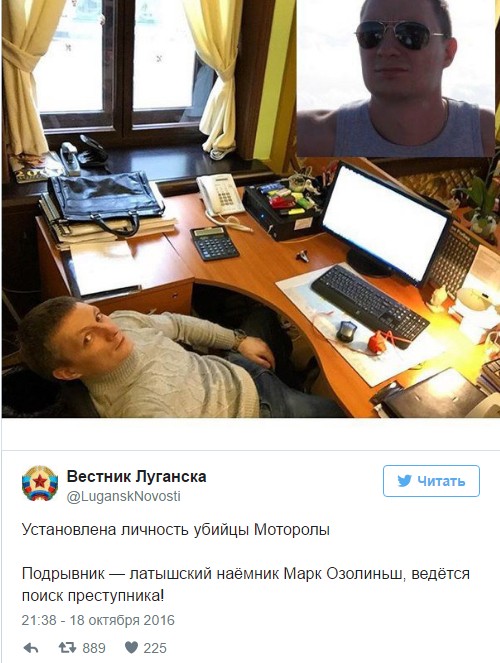 Корпоративный юрист из Москвы Максим Чапис увидел свое фото под сообщениями о том, что найден предполагаемый убийца Моторолы (Арсения Павлова), с которым сегодня простились в Донецке. В заметках СМИ шла речь о том, что подрывником оказался латышский наемник Марк Озолиньш и сейчас ведется его поиск.
