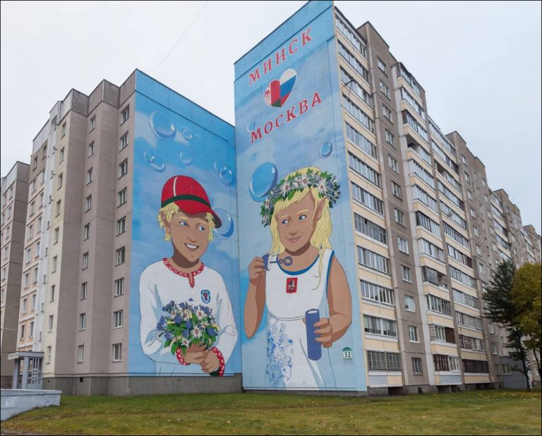 Граффити, символизирующие дружбу белорусской и российской столиц, было создано в подарок Минску ко Дням Москвы — по инициативе представительства столицы России. Работу выполнил ярославский художник Артур Кошак. Источник