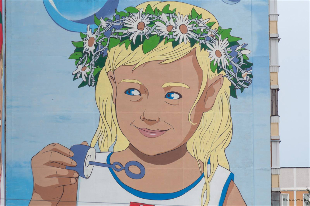 На граффити изображены мальчик, символизирующий Минск, и девочка, символизирующая Москву (на их майках нарисованы гербы двух столиц). Проволоку дорисовали в венок девочке и в букет, который держит мальчик.