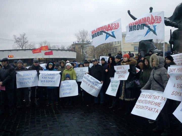 Сегодня состоялась акция, так называемого «Бездомного полка». Название сработало и привлекло внимание, очень уж оно контрастирует с широко известным общероссийским движением «Бессмертный полк». За громким названием якобы скрывается группа офицеров, требующих свои квартиры, положенные им после выхода в отставку. Дело в том, что генподрядчик (СУ-155), строивший военным дома в Москве, обанкротился, и теперь сдача некоторых объектов выбилась из первоначального графика.