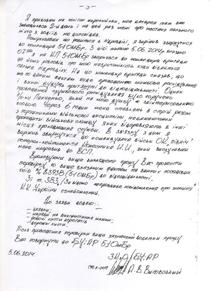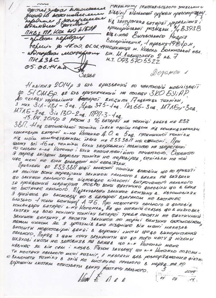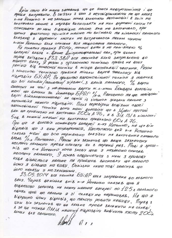 Андрей в составе 51-й бригады служил в Донецкой области. Во время службы замечал, что топливо убывает большими темпами. Начал разбираться и обнаружил, что машины, которые не использовались, по документам проехали сотни километров. За два месяца в его подразделении из 17 машин пропали больше двух тонн бензина и дизельного топлива. Для сравнения: этого топлива хватило бы, чтобы восемь грузовиков Урал доехали от Киева до Донецка.
