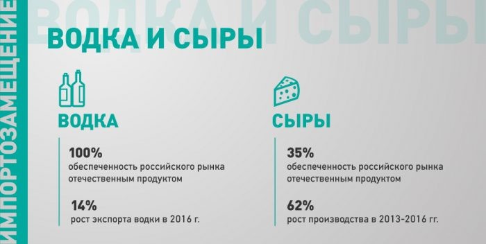 Ограничение на ввоз сыров вызвало среди отечественных производителей бум на производство сортов, ранее являвшихся прерогативой импортных поставщиков. Производством моцареллы и рикотты занялись даже отечественные монастырские хозяйства. И если твердые сорта отечественные сыровары в совершенстве пока не освоили, то мягкие сыры новым хозяйствам, появившимся в том числе в Подмосковье, на Алтае и в Краснодаре, вполне удались. Попробовать продукцию небольших местных хозяйств теперь можно на городских ярмарках выходного дня — только за 2016 год количество мест для фермеров для них увеличилось на 70%.