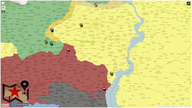 Западный берег водохранилища Аль-Асад под контролем сирийской армии, во всяком случае, в районе посёлка Хафса. Также удалось не допустить очередной курдско-турецкой резни в Манбидже, стратегически важном пункте на трассе М4, ведущей в Ракку. А что дальше?