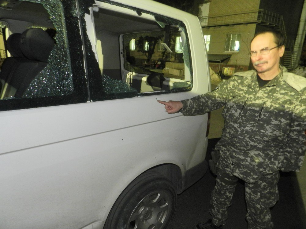 Дабы жители Донецка и окрестностей не скучали, хунтяне из Киева и Днепропетровска периодически молотят из автоматов по всяческим транспортным средствам. Например... Вот эта милая "газелька" неожиданно потеряла товарный вид. А дело было так...