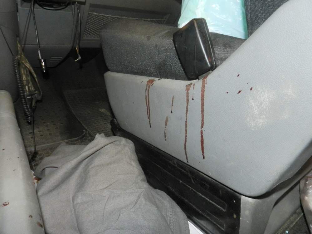 Стоял на выезде из Донецка блок-пост, и вдруг смотрит, а там... Несутся в сторону поста два автомобильчика - Ваз и Ауди. Не доезжая до поста сто метров, машины начали разворачиваться и... заодно... стрелять из автоматического оружия. Пули попадают в совершенно гражданскую бибику. Калибр 7,62, 5,45 (фото 3). Вот входные отверстия: (фото 4) Вот выходные: (фото 5)