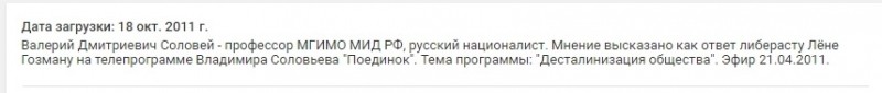Для обсуждения данного вопроса даже был приглашён специальный эксперт – историк и специалист по связям с общественностью. Только ни слова об интересах страны и людей не прозвучало. И дело тут не только в ангажированности самого издания, но и в гости. Приглашенный эксперт Фонтанки – это весьма противоречивая, а, в большинстве моментов, и вовсе отрицательная личность. Валерий Дмитриевич Соловей был «наставником» и научным руководителем русского националиста Владимира Тора (Владлен Леонидович Кралин). По совместительству он является председателем несостоявшейся партии «Новая сила».
