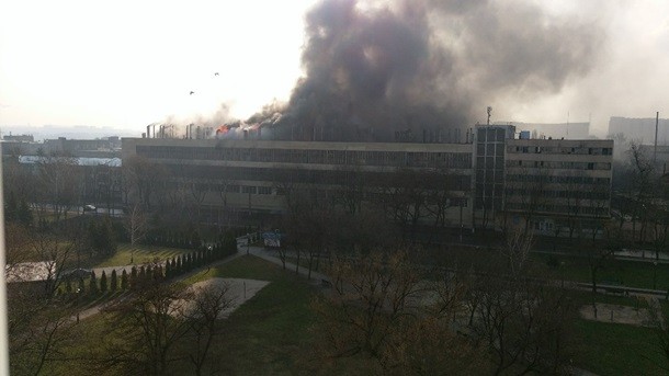 Сегодня утром в Харькове загорелось трехэтажное здание на территории Харьковского велосипедного завода имени Петровского.