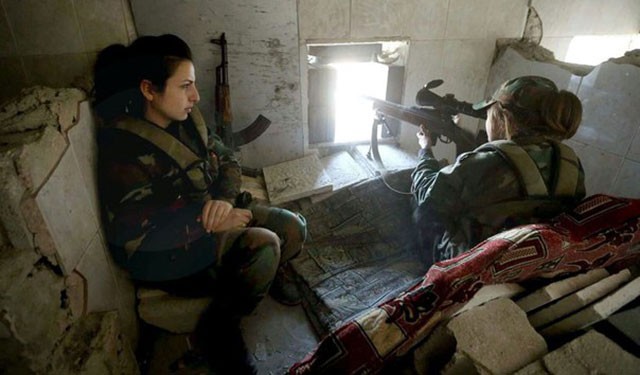 На снимке снайперша сирийской гвардии смотрит в прицел МЦ-116-М — редкой российской винтовки из арсенала подразделений ФСБ и ФСО. Это высококлассное оружие было разработано ЦКИБ на базе МЦ-116. В отличие от своего прародителя, данная модель использует 5 или 10-зарядный магазин винтовки Драгунова. На 100 метрах она демонстрирует кучность менее 3 см, а заявленная эффективная дальность стрельбы — 800 метров.