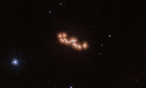 Серия точек на представленном выше изображении является композицией из 12 снимков, сделанных космическим телескопом Hubble Space Telescope в разные моменты на протяжении трех лет времени. Все эти снимки были сделаны при помощи технологии высокоточной астрометрии группой, возглавляемой итальянскими астрономами, которая отслеживала взаимное расположение двух компонентов далекой звездной системы, коричневых карликовых звезд, когда они медленно и плавно двигались по ночному небу, вращаясь друг вокруг друга.
