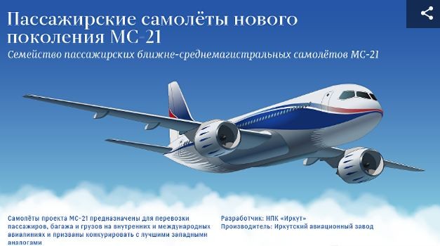 Напомним, что разработчиком самолёта является НПК «Иркут» и ОАО «ОКБ им. А.С. Яковлева». Производство MC-21 осуществляется на Иркутском авиационном заводе.